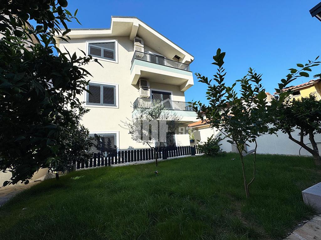 2+1 apartment for rent with a total area of 110 m2, on the 2nd floor, with a very beautiful view. It is organized into a living room, a slightly separated kitchen + dining area, 2 bedrooms, 2 bathrooms, and a balcony. There is also a front yard for relaxation along with a corner where a functional wood stove for barbecue is located, etc.