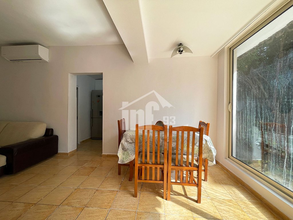 2+1 apartment for rent with an area of 80 m2 + yard 120 m2. It is organized as a living room + kitchen + dining area, two bedrooms, 2 bathrooms, and a veranda. The apartment has considerable space + a well-arranged yard for relaxation. It is very well furnished and also has air conditioning.
