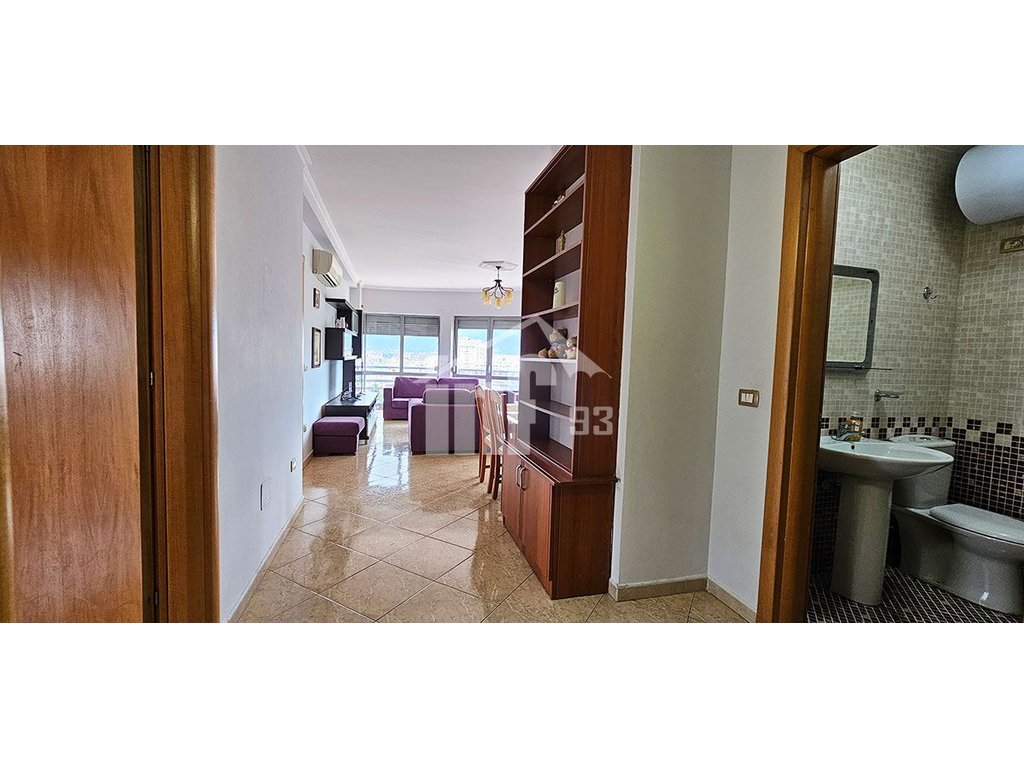 Apartament me qira 2+1 me sipërfaqe 110 m2, kati i 13-te, me orientimin lindje. Është i përbërë nga dhoma e ndenjes, ngrënie dhe kuzhinë, 2 dhoma gjumi, 2 tualete, ballkon i madh dhe korridori. Dritaret janë dopio xham me grila. Është komplet i mobiluar me pajisje cilësore dhe me ajër të kondicionuar. Pamje shume e bukur nga ana e Tiranes.
