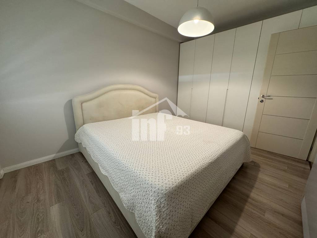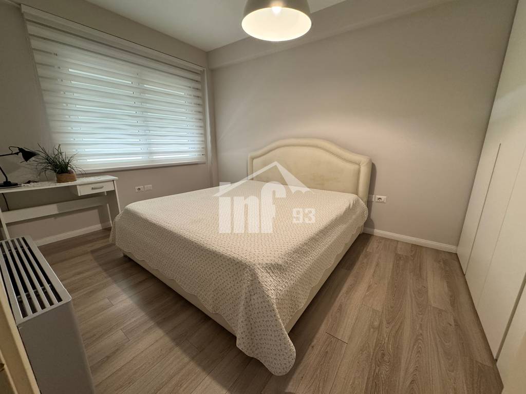 Apartament me qira 2+1 me siperfaqe 147 m2, kati i 6-te me ashensor. Është i përbërë nga një dhomë ndenje + ngrenie, kuzhina me vete, dy dhoma gjumi, 2 tualete me dritare, lavanderi, ballkon dhe korridor. Është totalisht i mobiluar me pajisje cilesore, sistem kondicionimi, dritaret jane dopio xham dhe kane dhe grila.
