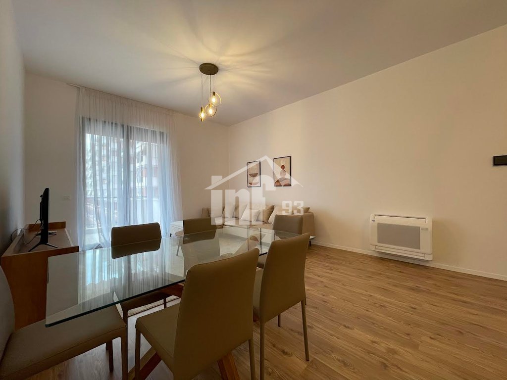 Prona ndodhet në një godinë 9 katshe me ashensor dhe administrim shumë të mirë. Apartamenti është komplet i investuar me rifinitura shumë cilësore, i shtruar me parket, mobilje dhe elektroshtëpiake të gjitha të reja shumë të mira, sistem kondicionimi, dritaret me grila etj.